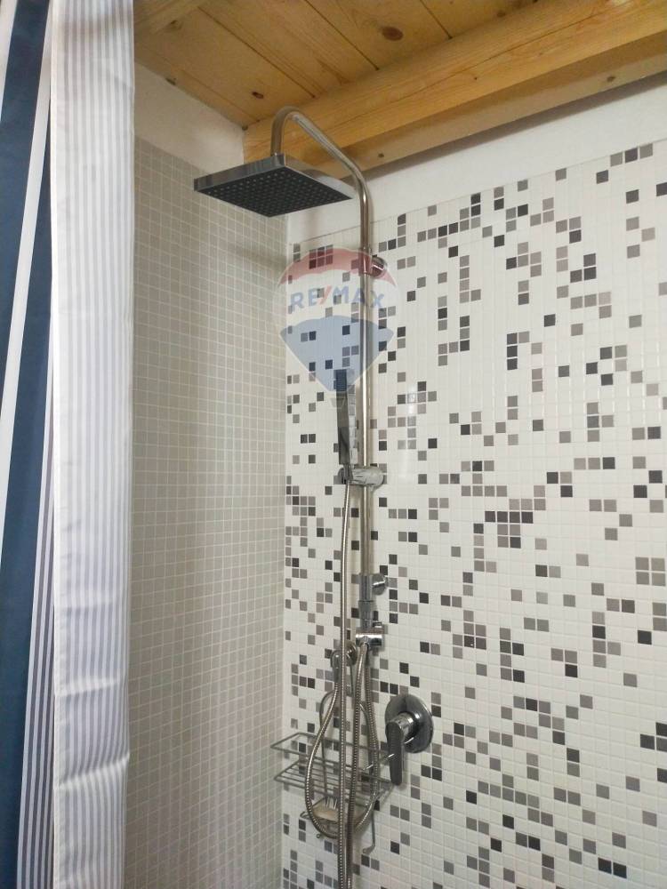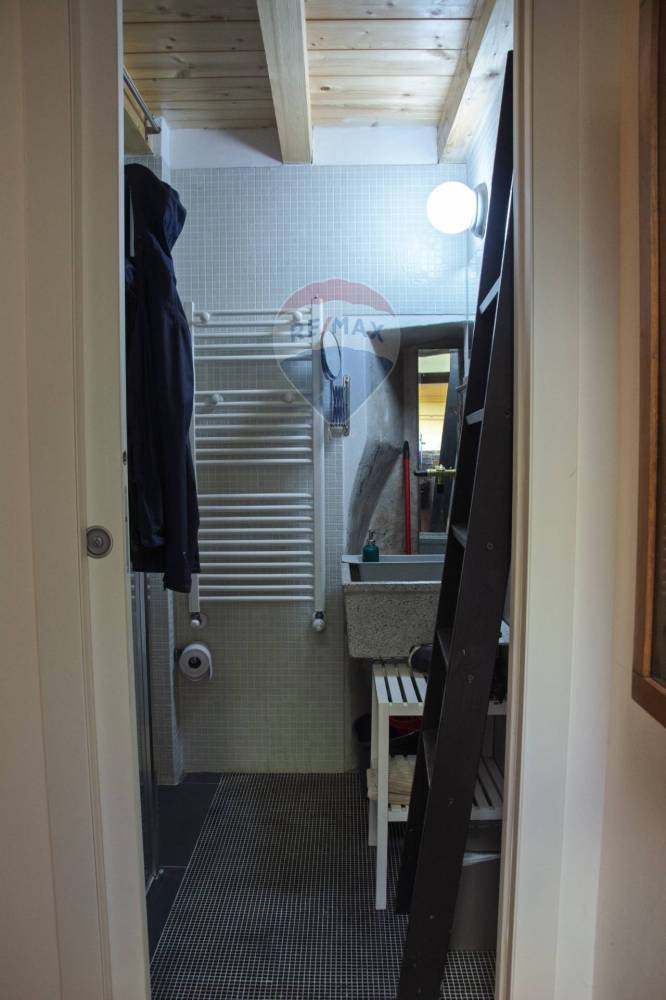 Il bagno, arredato con materiali di qualità e linee contemporanee, è completo di tutti i comfort. Sopra la zona giorno è stato ricavato un ripostiglio in quota, una soluzione intelligente che consente di ottimizzare al meglio gli spazi, mantenendo ordine e armonia.