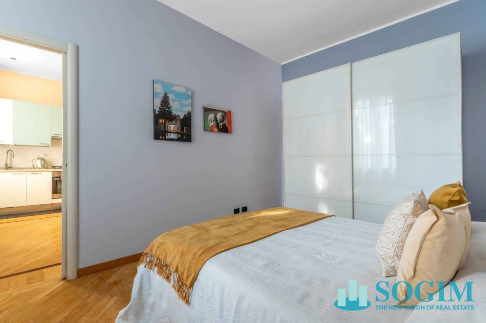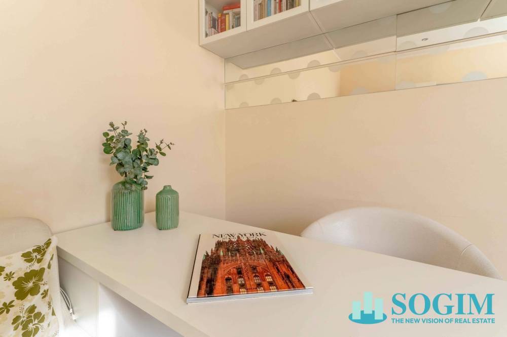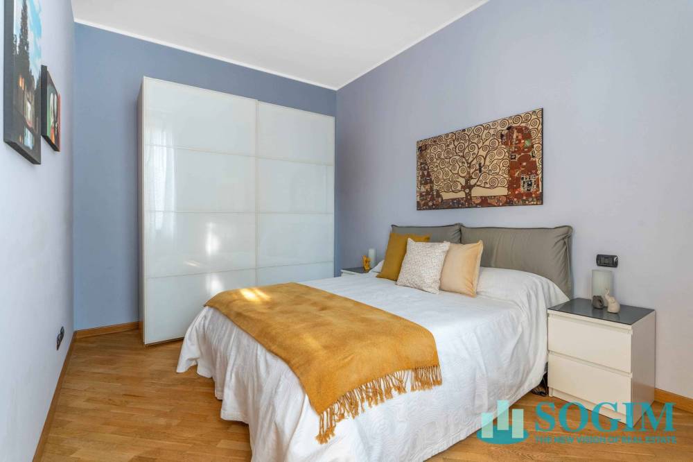 Si accede poi nel comodo e luminoso soggiorno con cucina a vista e, a seguire, nell'ampia camera matrimoniale.