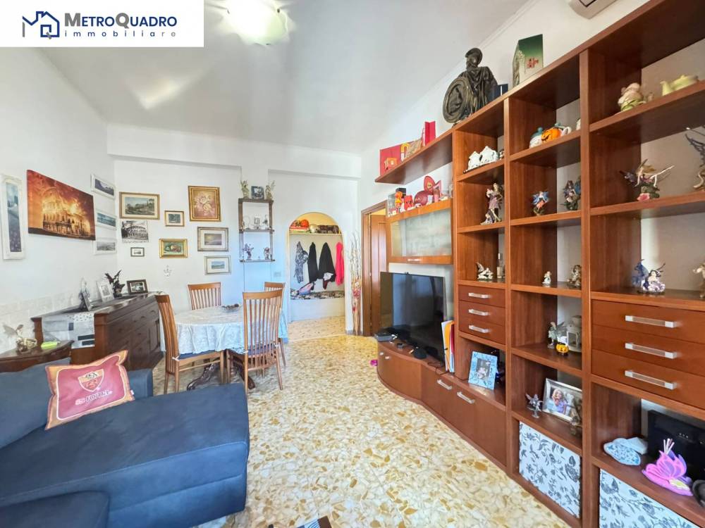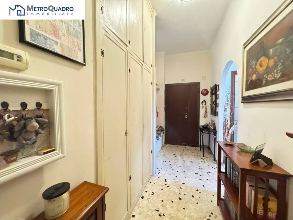 Con una superficie totale di 90 metri quadrati, l'appartamento è composto da un comodo ingresso con armadio a muro, soggiorno, cucina, due camere e cameretta e due bagni.