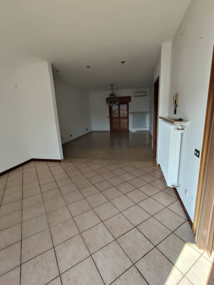 In una zona residenziale tranquilla e ben servita, comoda per raggiungere il centro del paese, proponiamo in locazione un ampio appartamento posto al secondo e ultimo piano di una palazzina composta da sole quattro unità abitative, garantendo così privacy e quiete. L’immobile si apre su un ingresso che conduce a un luminoso e spazioso salone, dotato di zona soggiorno e affacciato su due balconi che offrono piacevoli affacci sull’esterno. Adiacente al salone si trova un pratico cuocivivande, mentre uno studio, ideale per lavorare da casa o come stanza multifunzione, completa la zona giorno. Attraverso un disimpegno si accede alla zona notte, dove si trovano due bagni — uno con vasca e l’altro con doccia — e ben quattro camere da letto, di cui due con accesso diretto a un balcone. L’ambiente più suggestivo della casa è senza dubbio il grande terrazzo coperto di circa 60 mq, uno spazio ideale per pranzi all’aperto, momenti di relax o per ricevere ospiti in un contesto riservato e protetto. A completare la proprietà vi sono una cantina al piano seminterrato e un posto auto riservato. L’edificio è circondato da un ampio giardino condominiale, curato e fruibile, che contribuisce a rendere l’ambiente ancora più gradevole e accogliente. L’appartamento viene locato non arredato, rappresentando così una soluzione ideale per chi desidera personalizzare gli spazi secondo il proprio gusto.