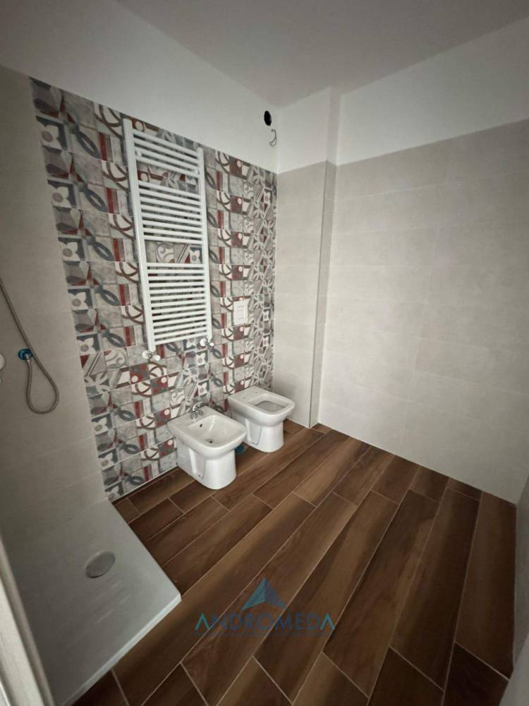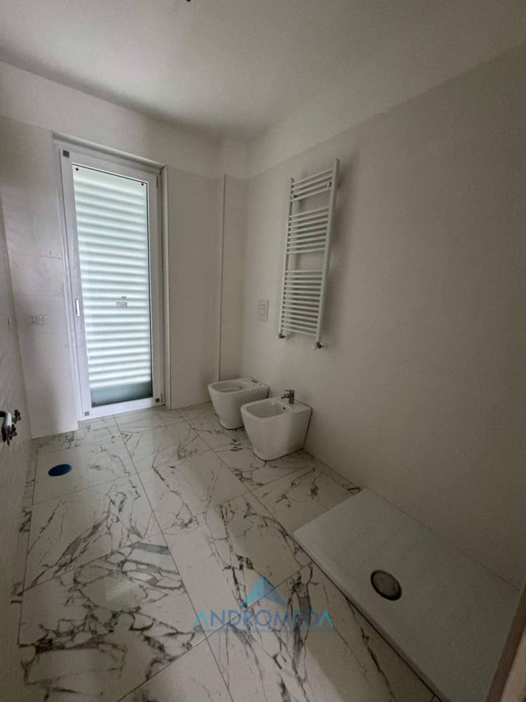 L’ appartamento si compone di: ampio salone living con cucina a vista, due camere da letto, di cui una con bagno privato, un ulteriore bagno di servizio e un ampio ripostiglio/lavanderia.