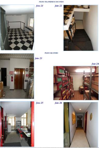 Piano primo: n. 11 locali uso magazzino di cui uno uso esposizione direttamente collegato al sottostante negozio, scala a chiocciola che mette in comunicazione con gli uffici posti al piano secondo, disimpegni diversi con servizi igienici, vano scala, ascensore, altro vuoto ascensore;- Piano secondo: n. 5 locali uso ufficio e magazzino in parte soppalcati con disimpegno di accesso dal vano scale o dall'ascensore; n. 7 locali uso magazzino con disimpegni, tre locali caldaia e vani accessori diversi, accesso dal vano scale, vuoto ascensore, altra scala interna conduce ad un ulteriore locale interposto ai piani primo e secondo;