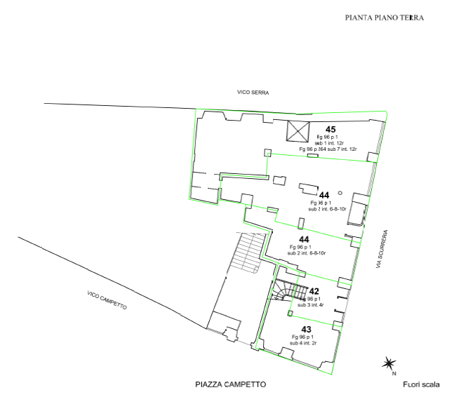 BENE 1 Porzione da terra a tetto del fabbricato detto Palazzo G.B. Imperiale ubicato in Genova, Piazza Campetto 9 e 33 r-35Br/Via Scurreria 2r-10r composto da un complesso di scantinati, negozi, magazzini, uffici e locali.