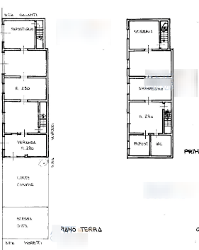 E' composto da, il piano terra è adibito a zona giorno con cucina separata, un ripostiglio e una veranda. Al piano si sviluppano due camere da letto, una stireria, un ripostiglio e un bagno. Il piano secondo è primo si sviluppano due camere adibito al sottotetto.