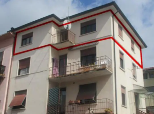 Appartamento posto al piano terzo, composto da corridoio, cucina, bagno, due stanze, ripostiglio e piccolo poggiolo. Al piano terra si trova il posto auto, accessibile dalla pubblica via da cui l'edificio è distanziato da una piccola area esterna comune.