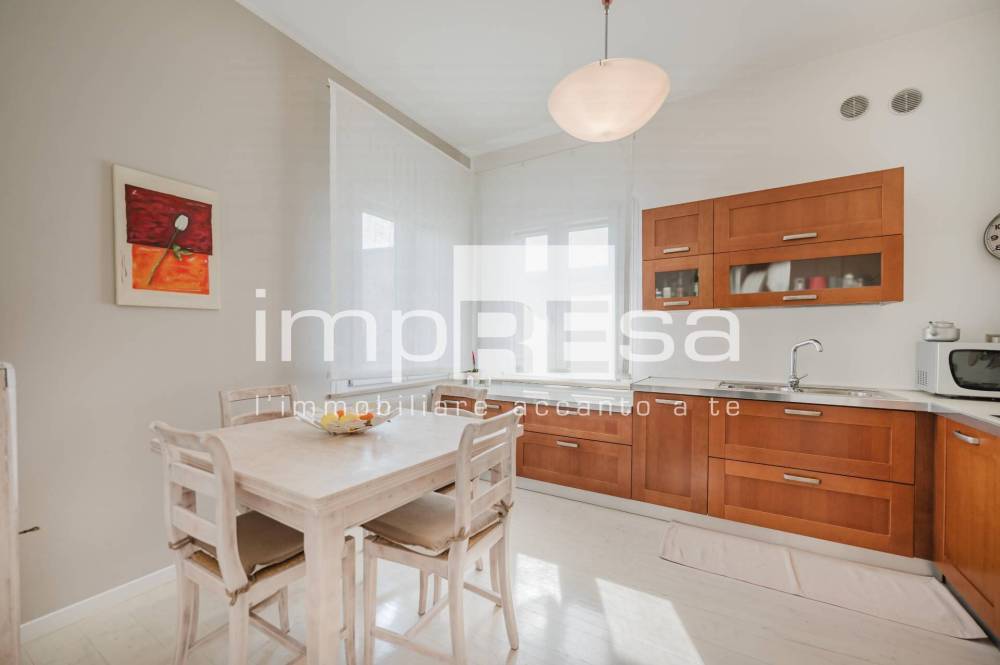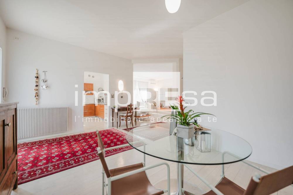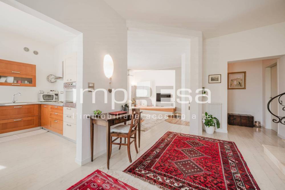 L' ingresso dell' abitazione si apre sulla grande e luminosa zona giorno composta da soggiorno con camino a legna e dalla sala da pranzo open space di 55mq, da una grande e luminosa cucina separata di 12mq e da un comodo bagno finestrato equipaggiato con box doccia di 6mq.