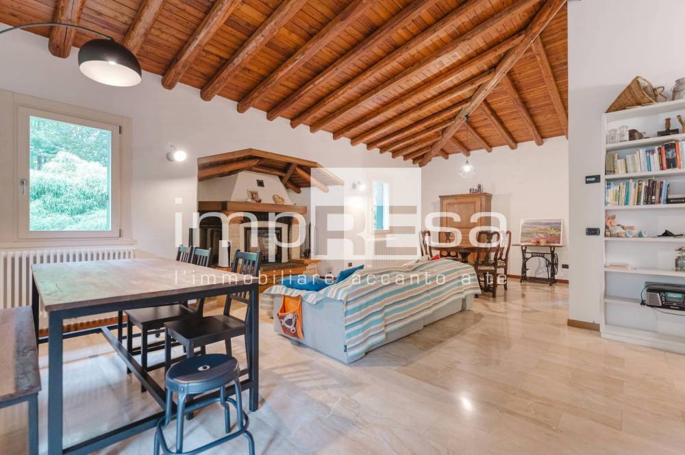 Immersa nella bellezza del Montello ma a dieci minuti di macchina da Montebelluna, circondata da un ricco giardino con alberi da frutto e fiori, casa singola sviluppata su unico livello recentemente ristrutturata.