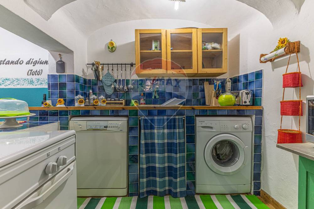 Il piano terra rialzato si compone di un ingresso accogliente, soggiorno e sala da pranzo con un angolo cottura dove è stato collocato un funzionale attacco per la lavatrice.