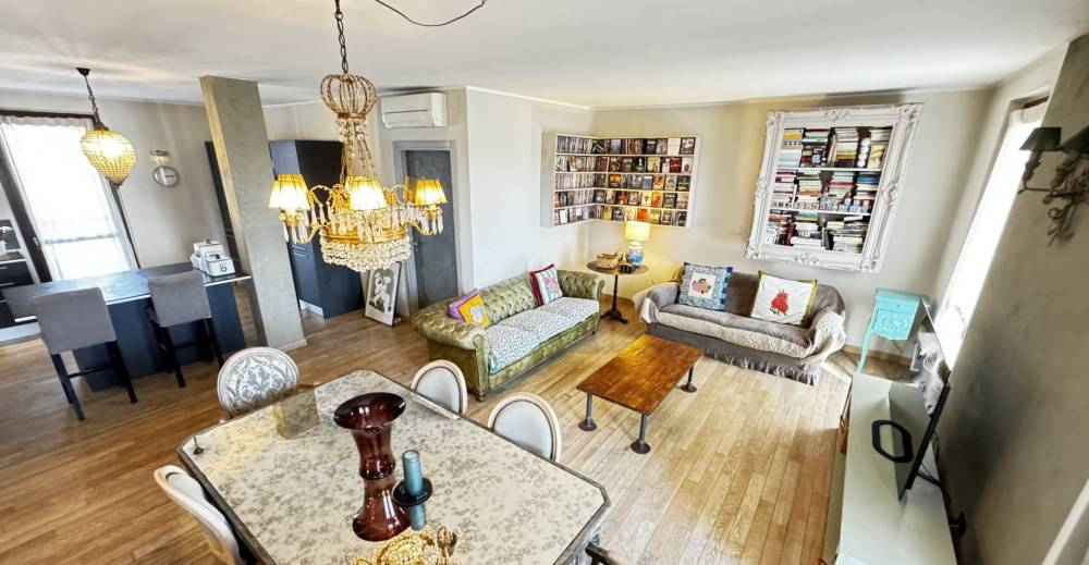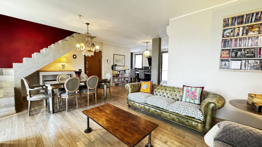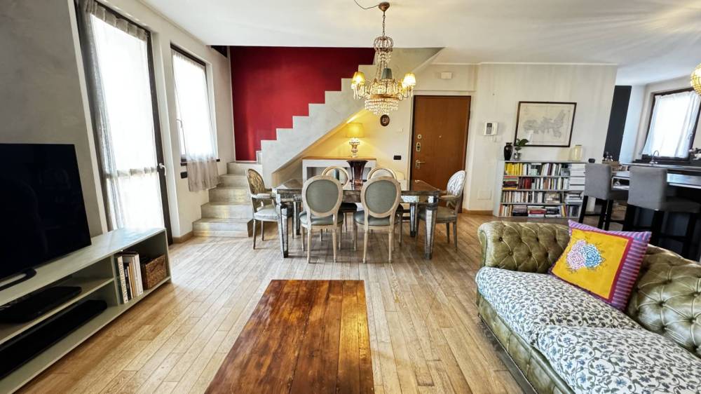 Vimercate, località Oreno: in zona residenziale adiacente il centro storico, comoda col raggiungimento delle principale vie di comunicazione ed il nuovo polo ospedaliero, proponiamo appartamento posto al piano secondo con sovrastante sottotetto così composto: ingresso, ampia zona giorno con cucina a vista, disimpegno notte, due camere e bagno per un totale di 100 mq. commerciali: il soggiorno e una camera affacciano su un ampio terrazzo fronte sud mentre la cucina su una balconata; al piano sottotetto, di 85 mq. commerciali, troviamo la camera padronale, due servizi, un secondo terrazzo e uno splendido bagno turco dove godersi momenti di relax.