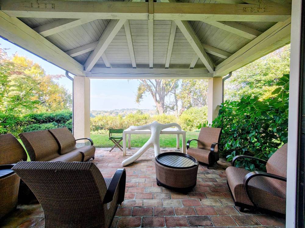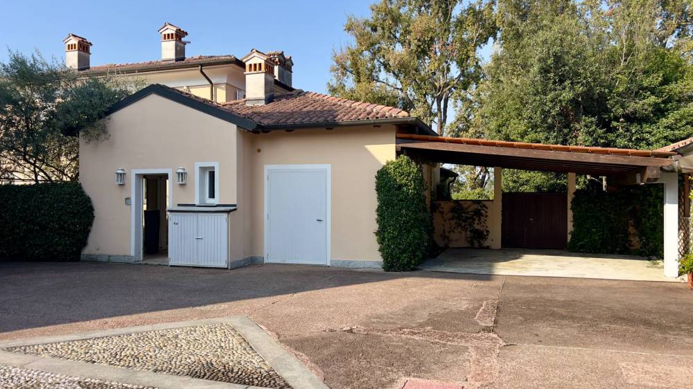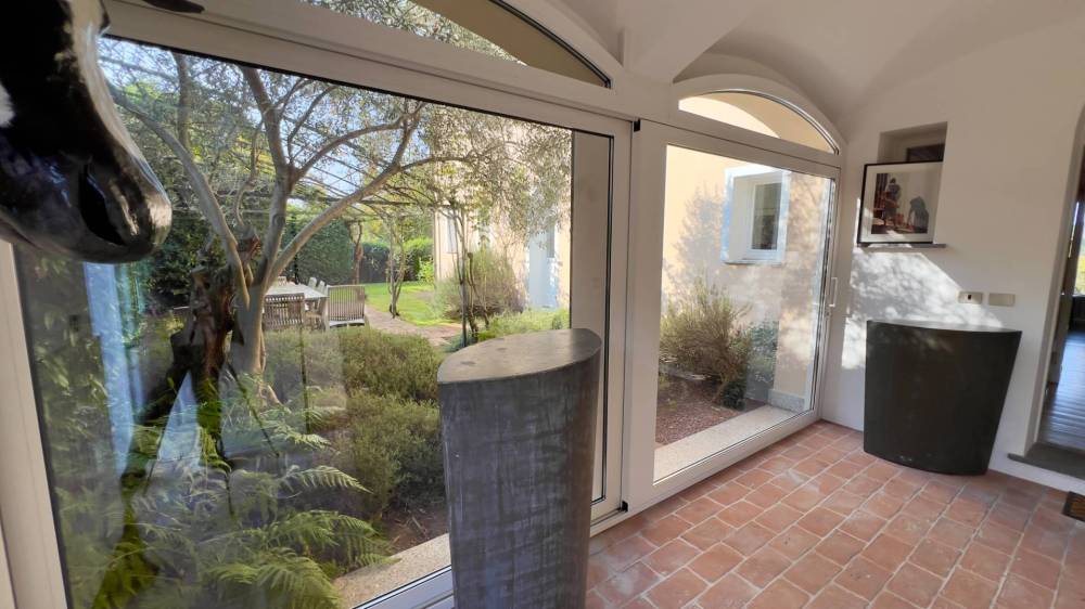 Allesterno, la villa si apre su un ampio giardino privato, unoasi di quiete e natura, perfetta per godere del ritmo lento delle giornate. Un grande patio coperto e una zona pranzo allaperto offrono spazi ideali per vivere lesterno in ogni stagione, ammirando la vista panoramica che abbraccia i colli e i campi del Golf Club.