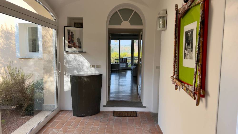 Lingresso si apre su un ampio soggiorno luminoso, dove grandi vetrate catturano la luce naturale e regalano scorci sul paesaggio circostante. Gli ambienti si susseguono fluidi e accoglienti: la sala da pranzo invita a momenti conviviali, mentre la cucina e gli spazi di servizio sono progettati per coniugare funzionalità e stile.