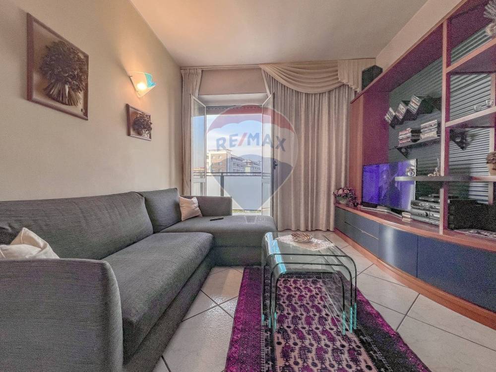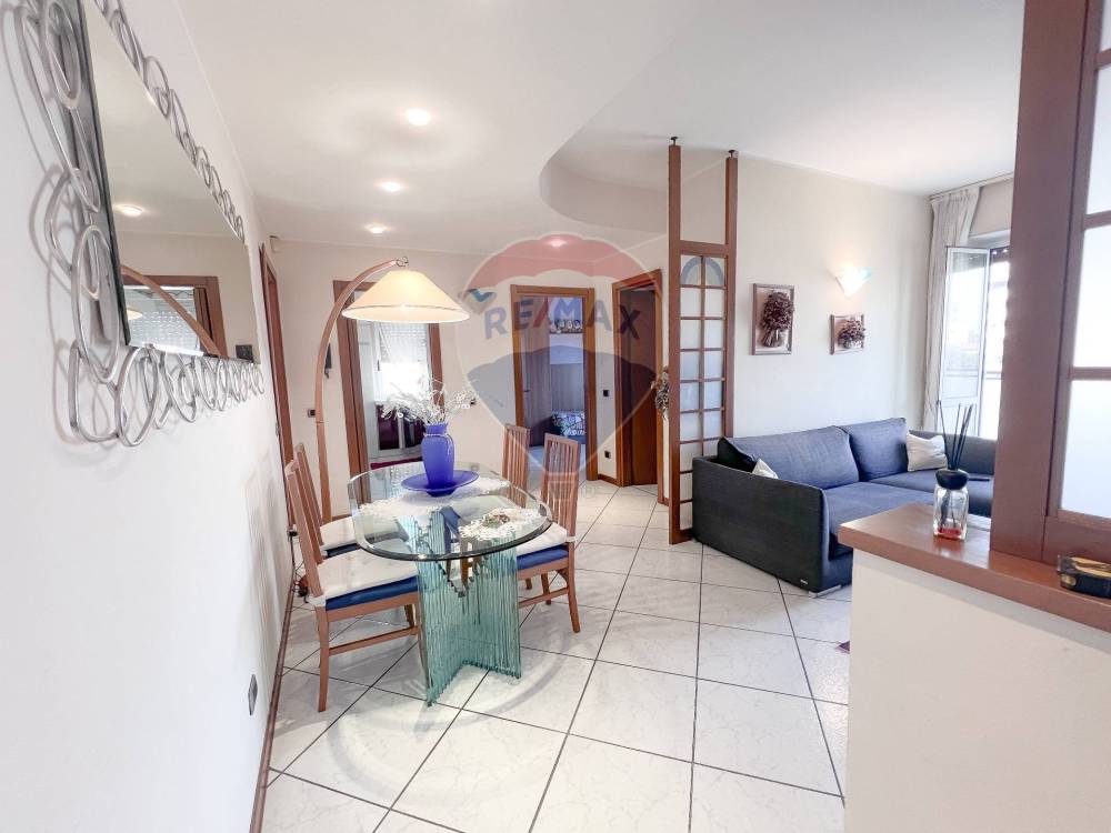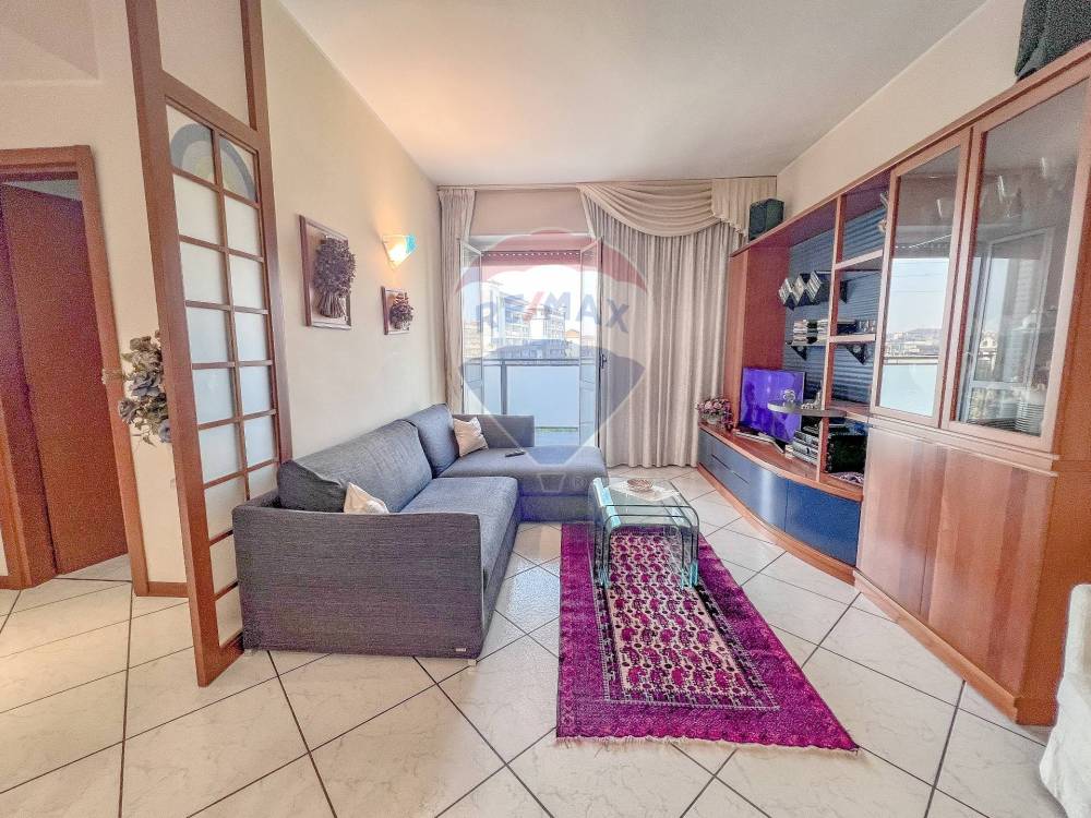 Ritornando all'interno dell'appartamento, risaliamo attraverso il soggiorno per accedere alla cucina, completamente arredata e dotata di tutti gli elettrodomestici. Essendo disposta su due lati, regala praticità nell'operatività di preparazione. Questo ambiente, anch'esso molto luminoso è dotato di un balcone di servizio, compatto e funzionale.