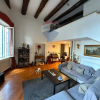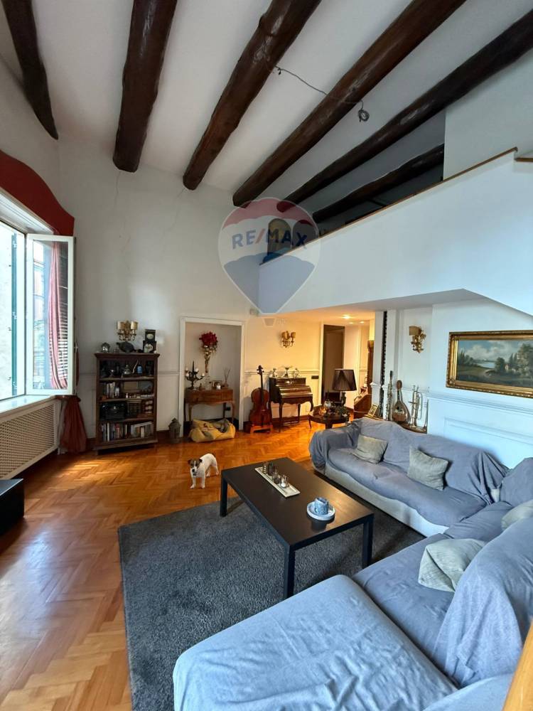 Entrando, si viene accolti da unatmosfera calda e avvolgente: il pavimento in rovere naturale si armonizza con la forza materica delle travi a vista, sapientemente restaurate per conservarne lintegrità storica. Laltezza maestosa dei soffitti, superiore ai 4 metri, dona respiro e ampiezza agli ambienti. Ogni elemento darredo è stato progettato con estrema cura: lavorazioni su misura in legno impreziosiscono la casa con eleganti cabine armadio e spazi funzionali.