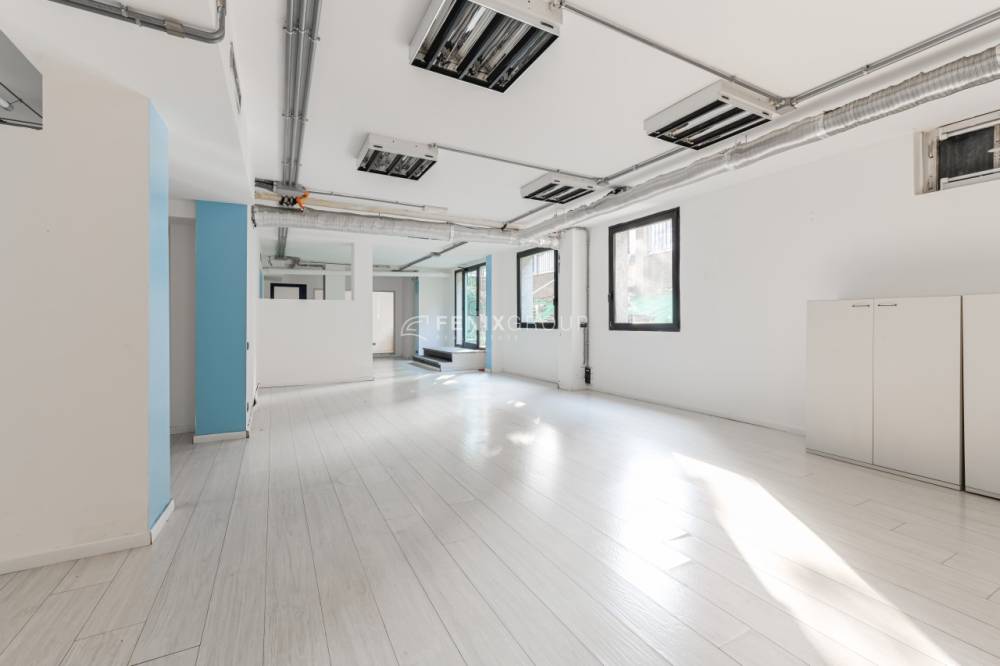 L’ufficio si sviluppa con spazi ampi e ben distribuiti, caratterizzati da una configurazione prevalentemente open space e da una forte luminosità, grazie alla presenza di numerose finestre. All’ingresso, sulla sinistra, si apre una grande zona multifunzionale, adatta a ospitare postazioni operative, un archivio o una sala riunioni, accompagnata da un pratico ripostiglio. Sulla destra, un corridoio conduce ad altri ambienti e al bagno finestrato, con affaccio su via Negroli.