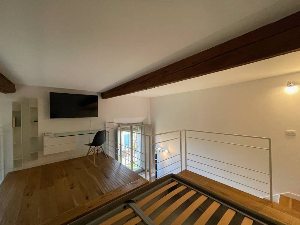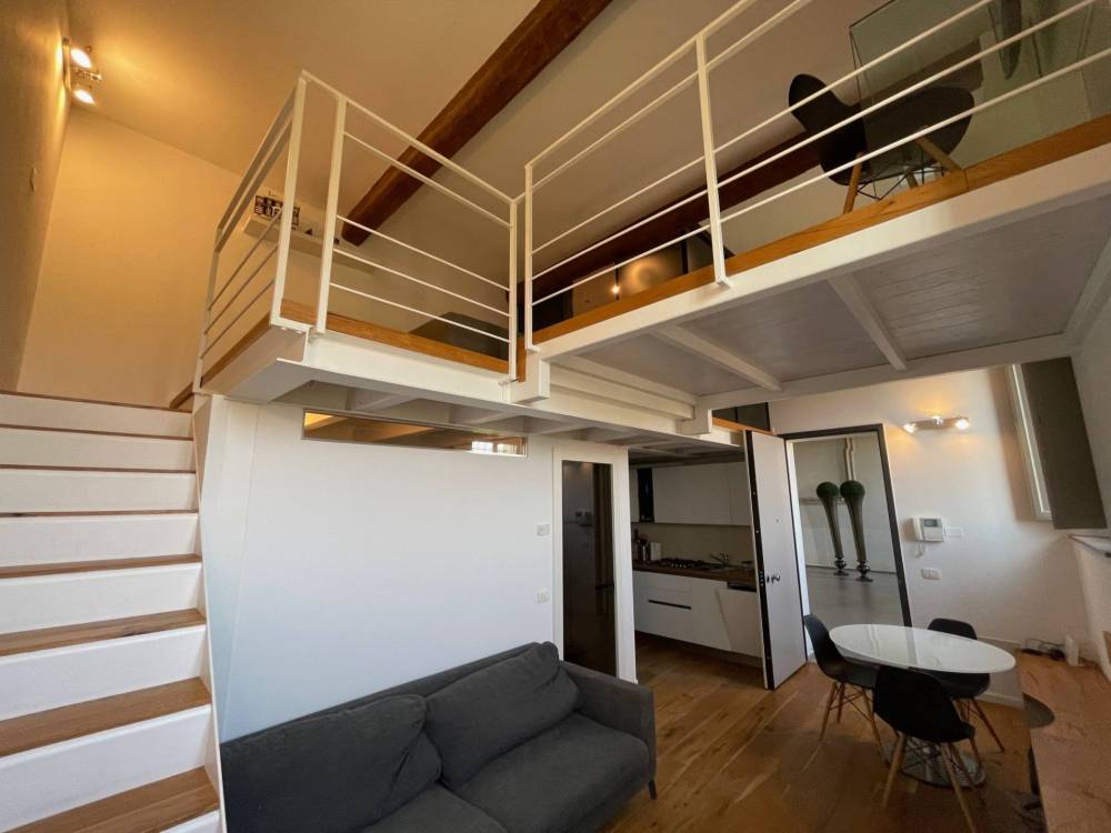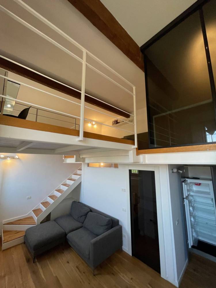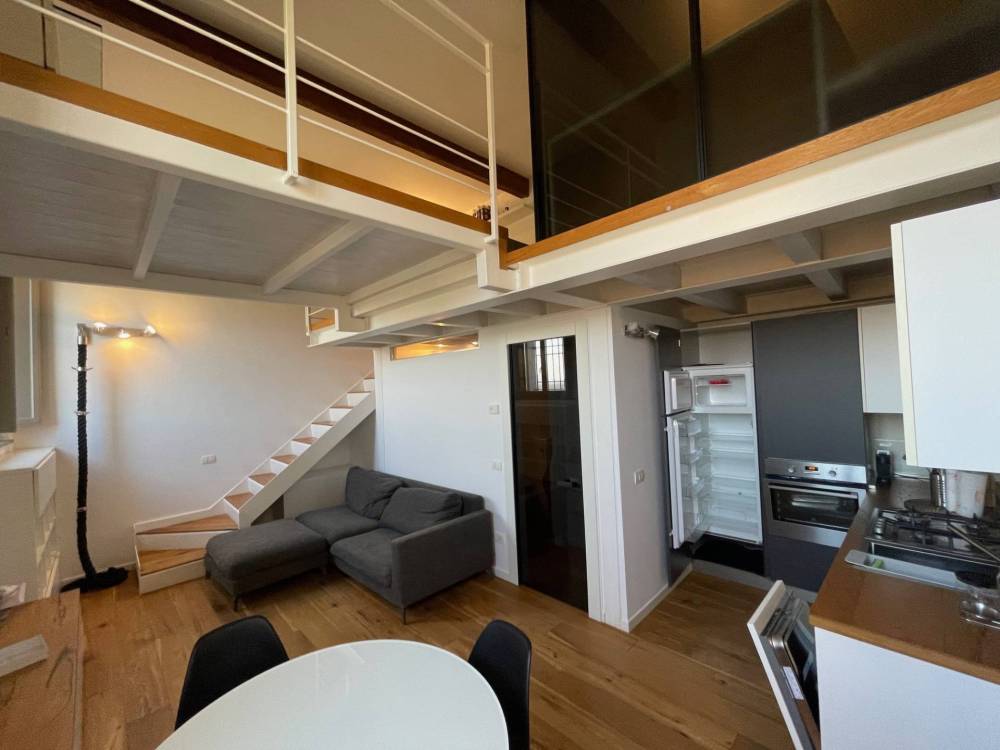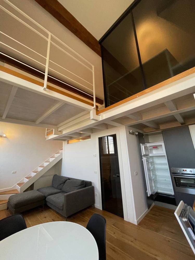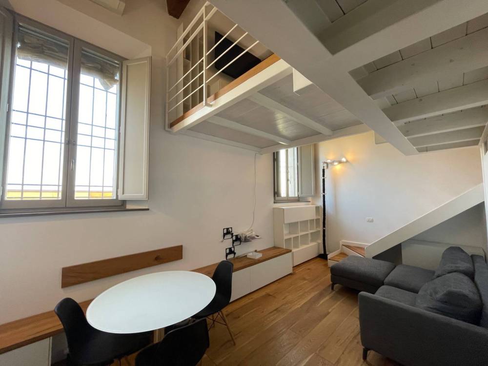 Appartamento in affitto in palazzo storico adiacenze Cocomaro di Focomorto e il nuovo polo ospedaliero di Cona, Ferrara. Al piano terra, disposto su due livelli, si affitta splendido appartamento in palazzo del 1800 dotato di posto auto e ampi spazi condominiali. Internamente limmobile si presenta come un open space a doppio volume con soggiorno e cucina a vista, zona notte soppalcato con cabina armadio dedicata e zona studio. Antibagno con zona lavanderia, bagno con doccia. Climatizzato, riscaldamento a pavimento.