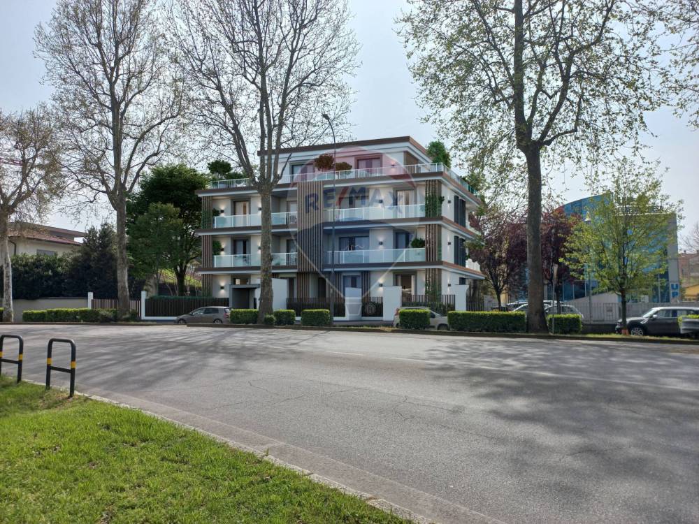 Lappartamento, al secondo piano, di 91.5 mq, con terrazzo di 18 mq con affaccio verso il viale alberato, interpreta il comfort moderno con sobria sofisticazione: