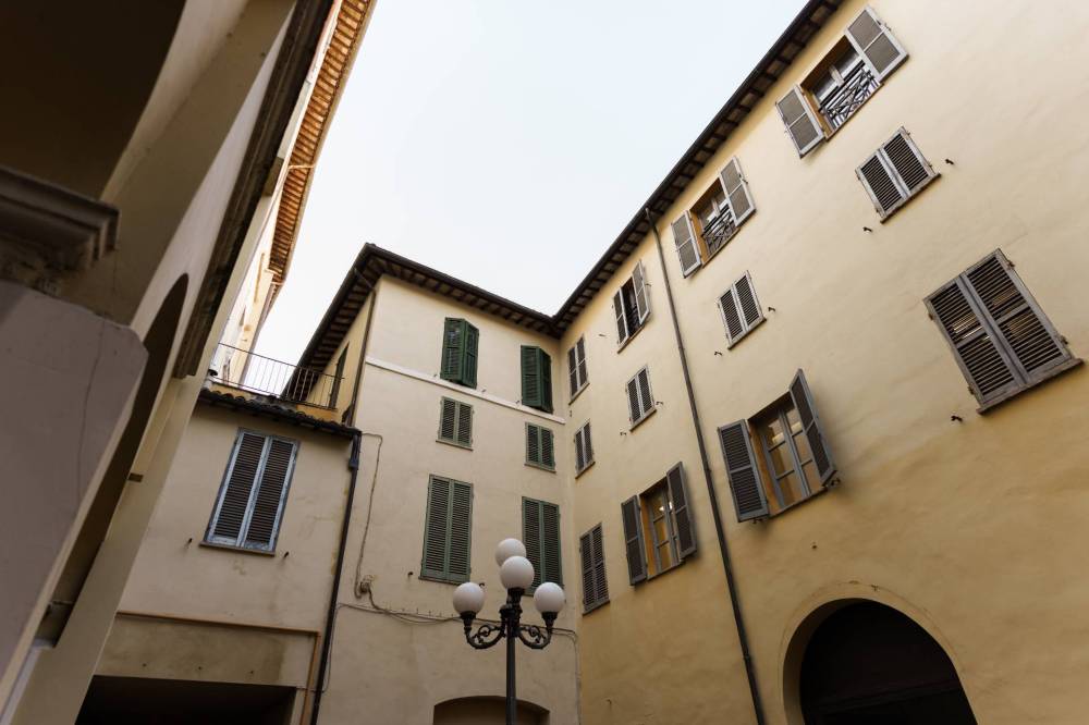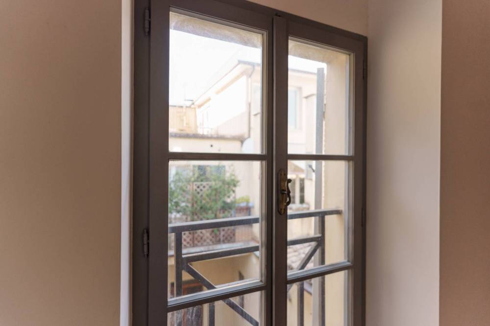 Le ampie finestre si affacciano sul caratteristico cortile interno, offrendo tranquillità e una piacevole vista sui dettagli architettonici del palazzo.