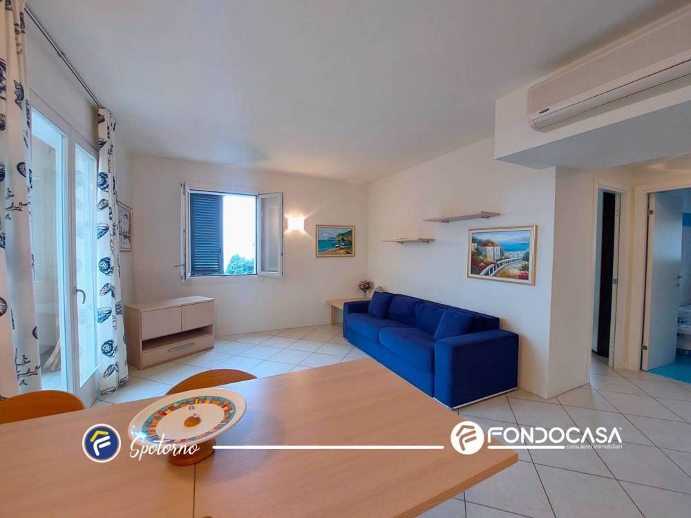 L'immobile presenta un ingresso indipendente con giardino privato composto da un'area piantumata e passerella piastrellata dove si raggiunge la porta d'ingresso, varcata la quale troviamo un'ampia zona giorno con angolo cottura e un terrazzo con vista aperta verso est, dove si può godere della incantevole Isola di Bergeggi. Sempre al piano terra è presente un bagno con vasca idromassaggio, una camera da letto matrimoniale ed un ripostiglio. Il piano superiore è composto da una zona comprensiva di camera da letto e bagno con zona lavanderia.