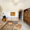 La superficie interna è di circa mq 100 e si divide in: ingresso in zona living con ampie volte e dettagli in pietra. Sul lato sinistro, cucinino. Sul lato destro zona notte con due camere matrimoniali e un bagno con doccia. Una scala in pietra conduce al primo piano con ulteriore camera ad uso deposito e accesso al terrazzo.
