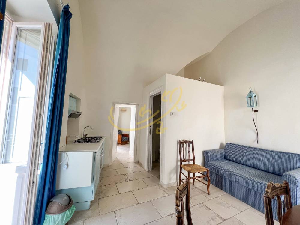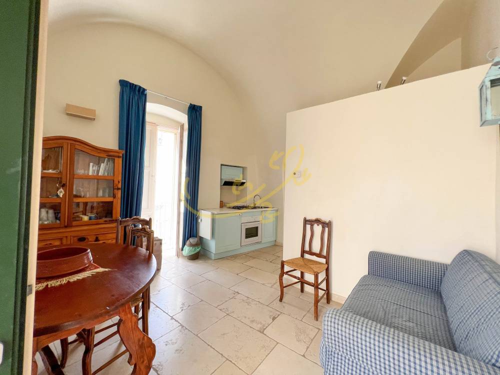 Proponiamo in vendita abitazione al primo piano, di recente ristrutturazione, composto da ingresso in piccolo soggiorno e cucina con balconcino, bagno con doccia e una camera da letto con balconcino e affaccio sul chiostro di S. Salvatore. Volte a Spigolo e a botte. Superficie di circa 45 mq. Terrazzo di circa mq 40 vista mare con vista sul campanile della Chiesa di S. Salvatore.