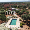 Completa la proprietà un ettaro di terreno con ulivi secolari ed alberi da frutto, una piscina di 40 mq con area solarium, un'ampia zona relax con due divani semicircolari, ricavati dalla pietra ed un'altra area attrezzata con barbecue, piano di lavoro con lavello, ed un piccolo deposito interrato di 10 mq a servizio della piscina.