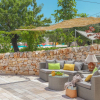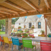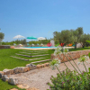 I trulli sono circondati da prato inglese ove ubicato un pergolato in legno attrezzato con area relax con divani, tavolo da pranzo, barbecue, lavabo, frigo bar.