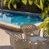 Porticato attrezzato con tavolo da pranzo, piscina (13x6) con area solarium, gazebo e bagno.