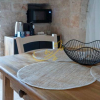 L'immobile ha una superficie interna di circa 120 mq e presenta finiture di pregio, con un piazzale realizzato in chianche e pietra a vista. All'interno, il pavimento in chianche crea un ambiente caldo e accogliente.