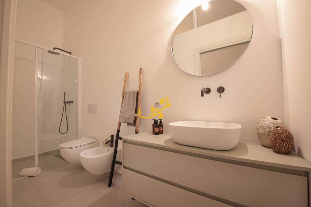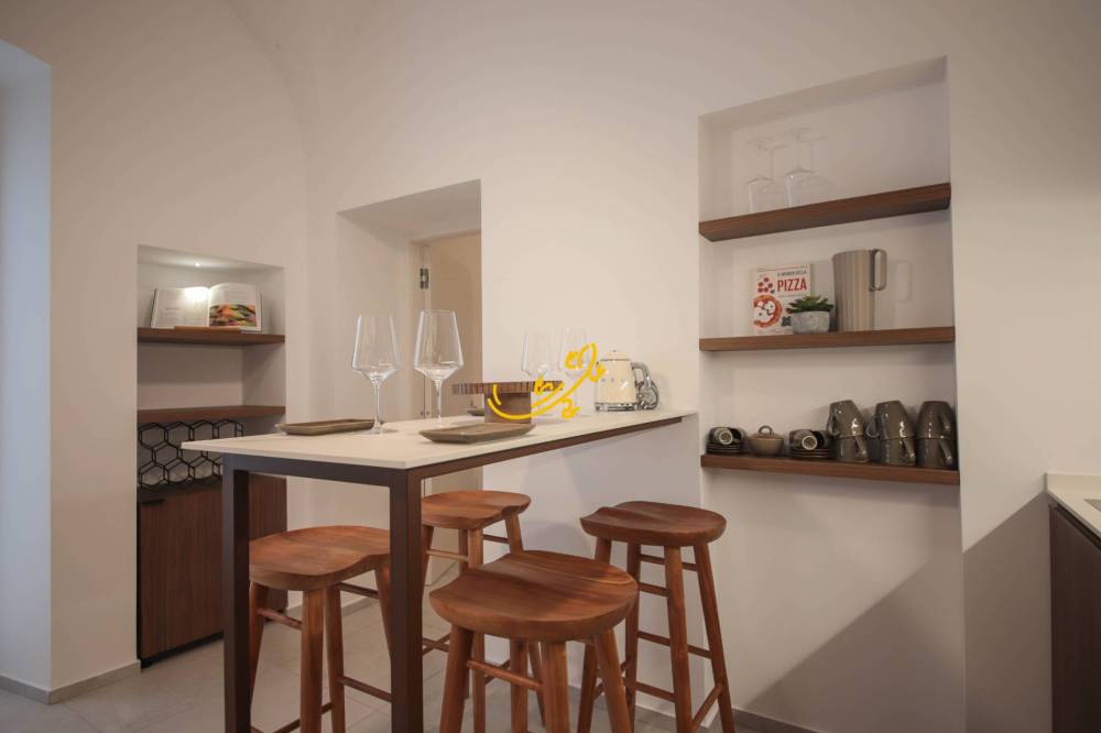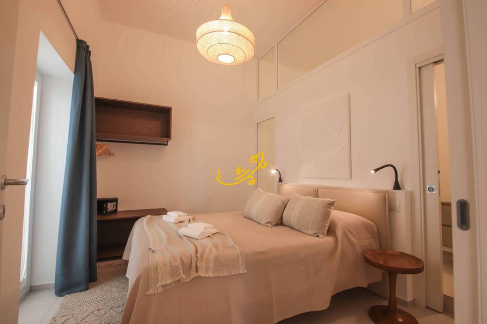 Al primo piano, LA LAMPARA si compone di ingresso in zona living con un comodo divano-letto, balcone con affaccio sul vicolo; bagno con doccia. Comoda cucina con piano cottura a induzione, lavastoviglie, frigorifero e fornetto; camera matrimoniale con balcone, ampio bagno con doccia.
