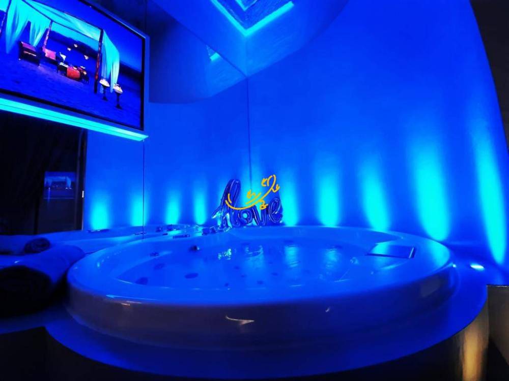 ð¹ Suite Christian Letto tondo, giochi di luce in fibra ottica, vasca idromassaggio, bagno Hammam con cromoterapia e maxi schermo.