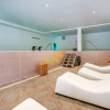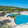 Essa comprende un ristorante con 150 posti e cucina esaurientemente attrezzata, con ampia dispensa, spogliatoi e bagni distinti uomo-donna per il personale, ingresso di disimpegno e servizi per disabili; una sala riunioni capace di ospitare fino a 120 persone; due piscine esterne con illuminazione notturna, scavate nella roccia, una delle quali fornita di impianto idromassaggio, nel contesto di una grande terrazza-solarium con vista panoramica; campo da tennis recintato e provvisto di illuminazione notturna, parcheggio dedicato e ingresso autonomo; campo polivalente da pallacanestro e volley anchesso recintato e fornito di illuminazione notturna; campo da bocce con illuminazione notturna; struttura spa, con bagno turco, piscina per idromassaggi, vasca per talassoterapia, zona massaggi, sauna, sala scrub, fango terapia, spogliatoi e bagni, divisi in sezioni per uomo e donna; quattro parcheggi interni con cancelli autonomi, telecomandati e videosorvegliati; area esterna per giochi per bambini; giardino attrezzato con sentieri in pietra illuminati, ampio piato inglese interamente irrigato e impreziosito da alberi secolari dulivo, querce antiche e piante ornamentali. Gli ambienti sono forniti di riscaldamento con impianto di ultima generazione alimentato altresì da pannelli solari.