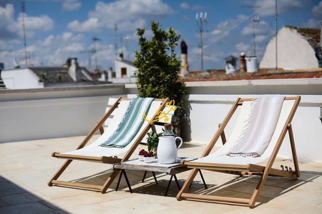 Primo livello: accogliente ingresso su unampia zona living luminosa, con affaccio su uno dei terrazzi. La zona giorno comprende una raffinata stanza con libreria e caminetto perfettamente funzionante, ideale come studio o sala lettura, oltre a una seconda stanza, già predisposta per essere trasformata in cucina. I pavimenti originali, splendidamente conservati, alternano antiche cementine, chianche pugliesi e parquet piallato a mano, contribuendo a creare unatmosfera calda e autentica.