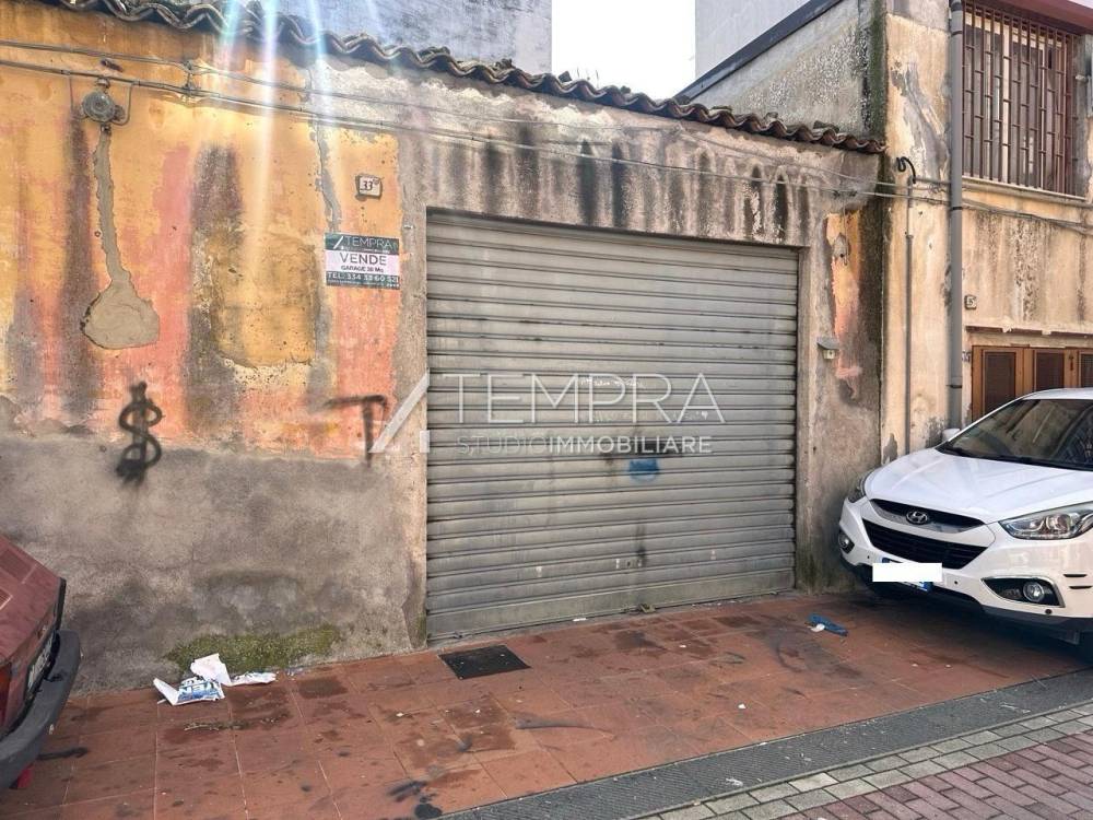 TEMPRA STUDIO IMMOBILIARE propone in vendita ad Adrano, e, precisamente con ingresso dalla Via Euripide, garage al piano terra di 30 mq con aria libera soprastante, tetto di copertura in legno ripristinato di recente e saracinesca con apertura automatica. Posto su ampia strada, il che permette lo spazio di manovra con qualsiasi mezzo. Buone condizioni interne, provvisto di energia elettrica.