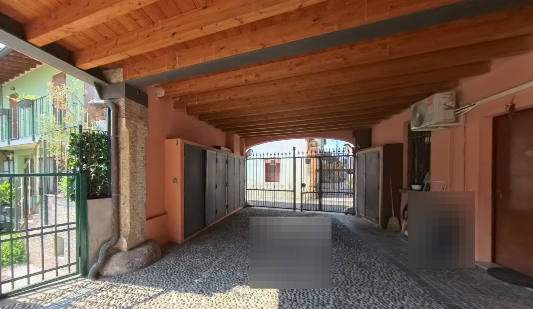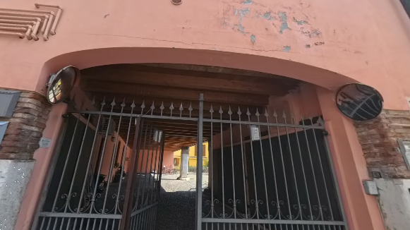 Entrati nella corte mediante l'apertura di un cancello elettrico e attraversato un porticato condominiale, si accede ad una scala con ascensore che consente l'accesso ai due piani superiori dell'edificio. Giunti al piano secondo si precedere per un passaggio comune fino all'ingresso dell'abitazione. L'unità residenziale è composta da un ambiente giorno soggiorno-cucina, due camere e un bagno, dotato di finestra tipo velux. Pertinenze dell'unità residenziale sono un piccolo ripostiglio al piano secondo, posto in prossimità dell'arrivo delle scale condominiali, una cantina e un garage al piano interrato.