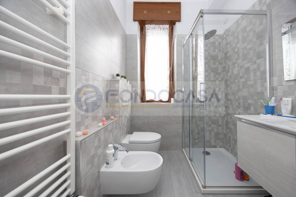 Bilocale di 61mq, ristrutturato completamente nel 2018, composto da ampio soggiorno con cucina a vista con accesso al balcone, spaziosa camera matrimoniale ed un bagno finestrato dotato di box doccia e sanitari sospesi. L'appartamento è dotato di certificazioni degli impianti elettrico ed idraulico, dispone di aria condizionata sia nella zona giorno sia nella zona notte e presenta una doppia esposizione permettendo di godere di ottima luminosità.