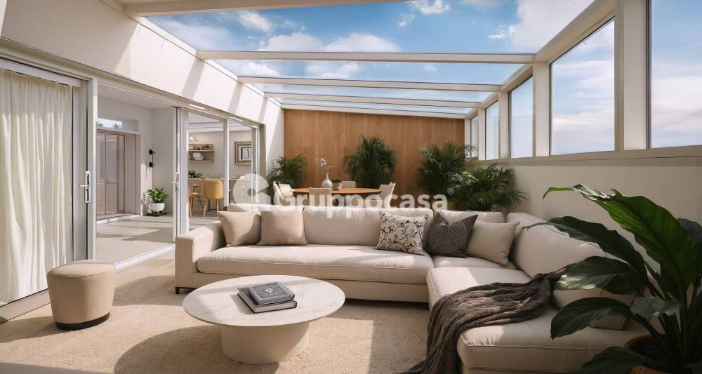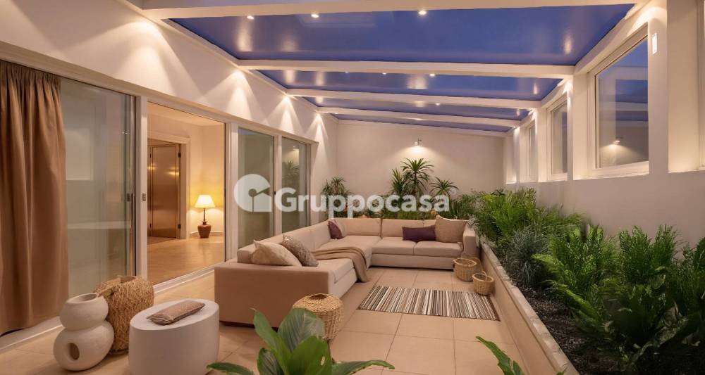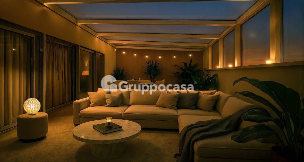 Il trilocale comprende una spaziosa e luminosa zona giorno con giardino d'inverno, due bagni, due ampie camere da letto, un ripostiglio e un ampio openspace mansardato.