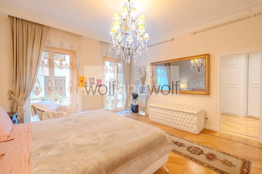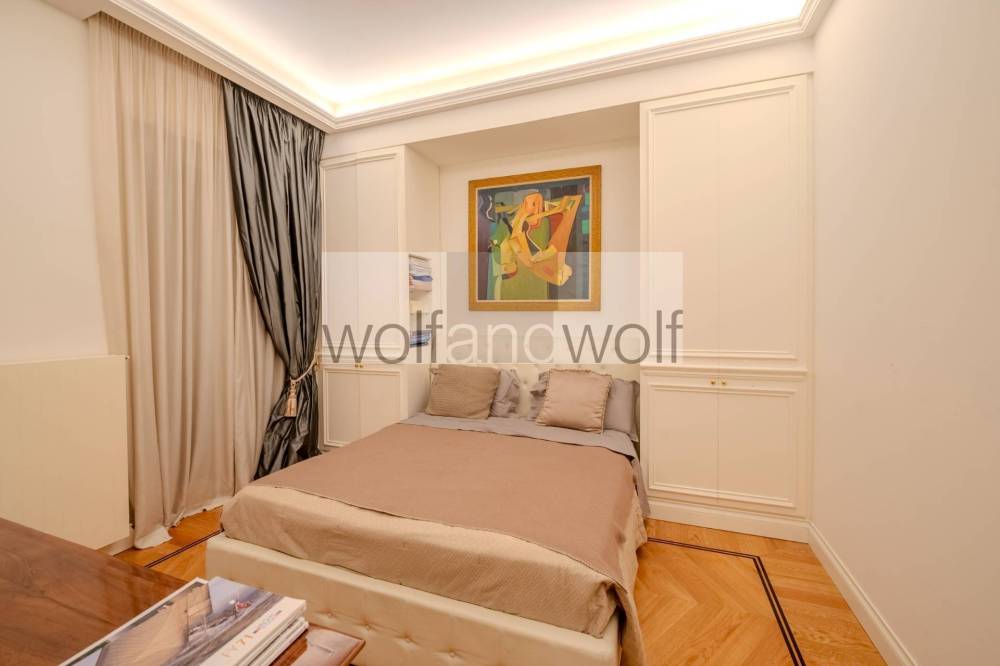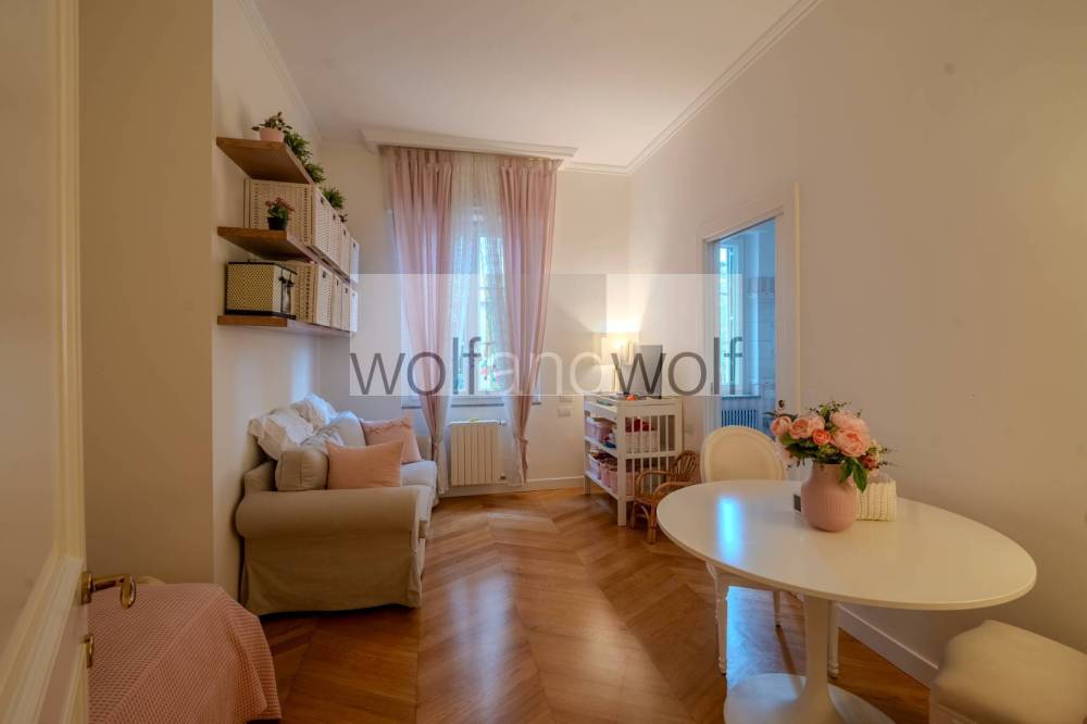 Una elegante scala in marmo bianco ci porta a due grandi camere da letto e due bagni, nella zona oggi dedicata ai ragazzi. Continuando a salire troviamo un grande soggiorno e una sala da pranzo separata. Il cuore della casa. Questi sono lussuosamente rifiniti con materiali di grande pregio e il living affaccia da una parte su di un piccolo e raccolto terrazzo interno, mentre dallaltra parte si può godere della magnifica vista sulla Piazza Borromeo. La camera master con accesso blindato è dotata di cabina armadio e di un bagno in marmo en suite. È presente un'altra camera matrimoniale con un particolare bagno in pregiato marmo nero. La cucina è attrezzata e dotata di elettrodomestici di ultima generazione.