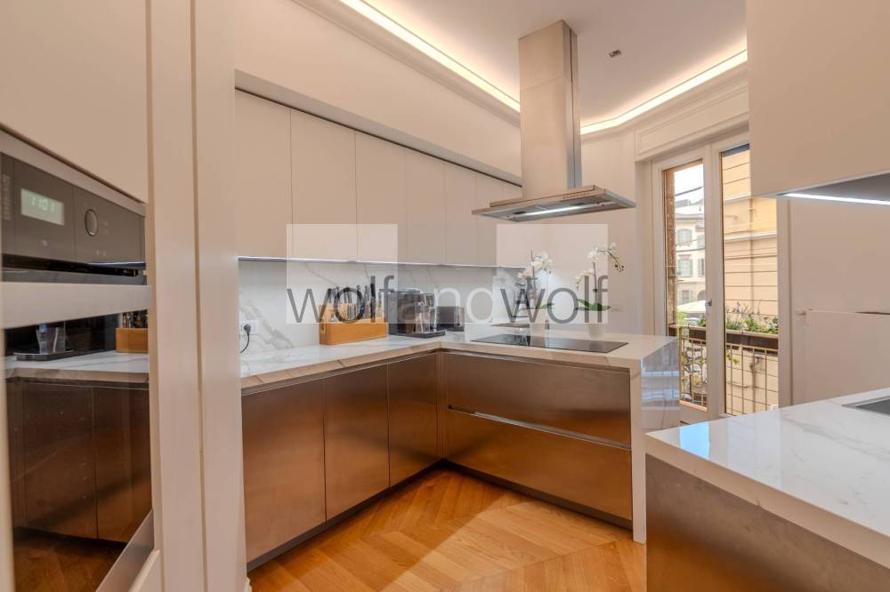 Il lussuoso appartamento è suddiviso su quattro livelli, offrendo la sensazione di essere in una villa privata pur essendo in uno storico palazzo milanese, con spazi ampi e finiture di altissimo pregio.