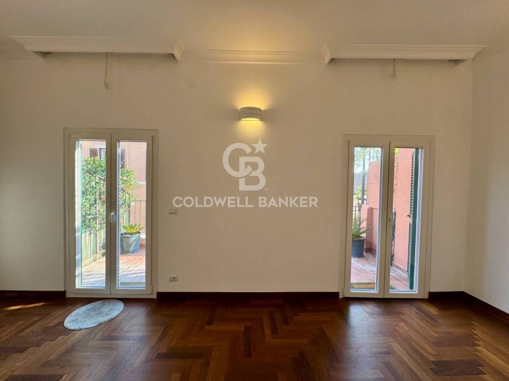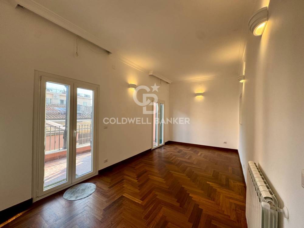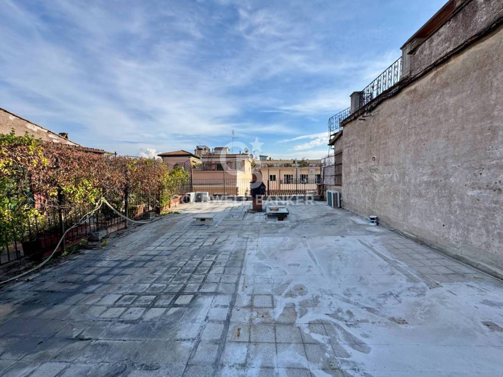 L'immobile è dotato di un doppio ingresso e di ascensore, si compone di ingresso, zona living, cucina arredata, ampia camera matrimoniale con cabina armadio e bagno en suite con doccia, seconda ampia e luminosa camera e secondo bagno con vasca. La stessa si affaccia su un terrazzo a livello dal quale tramite una scala si accede al terrazzo sovrastante. Il solarium sovrastante risulta essere un ambiente esclusivo e riservato, ideale per momenti di relax o per godere della vista sui tetti del centro storico. Limmobile si distingue per la luminosità degli ambienti e la cura dei dettagli: pavimenti in parquet e finiture moderne che ne valorizzano ogni spazio. Grazie al piano alto e alla recente ristrutturazione, lappartamento si presenta luminoso, silenzioso e pronto per essere abitato. Soluzione ideale per chi desidera vivere nel cuore di Roma in un contesto elegante. NO USO RICETTIVO. SOLO REFERENZIATI.