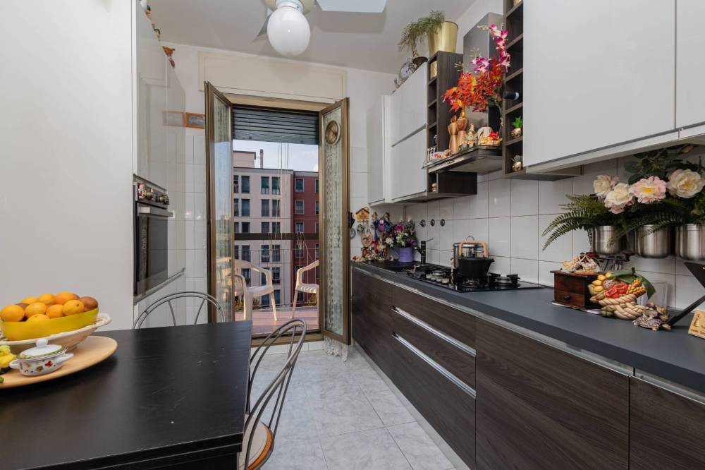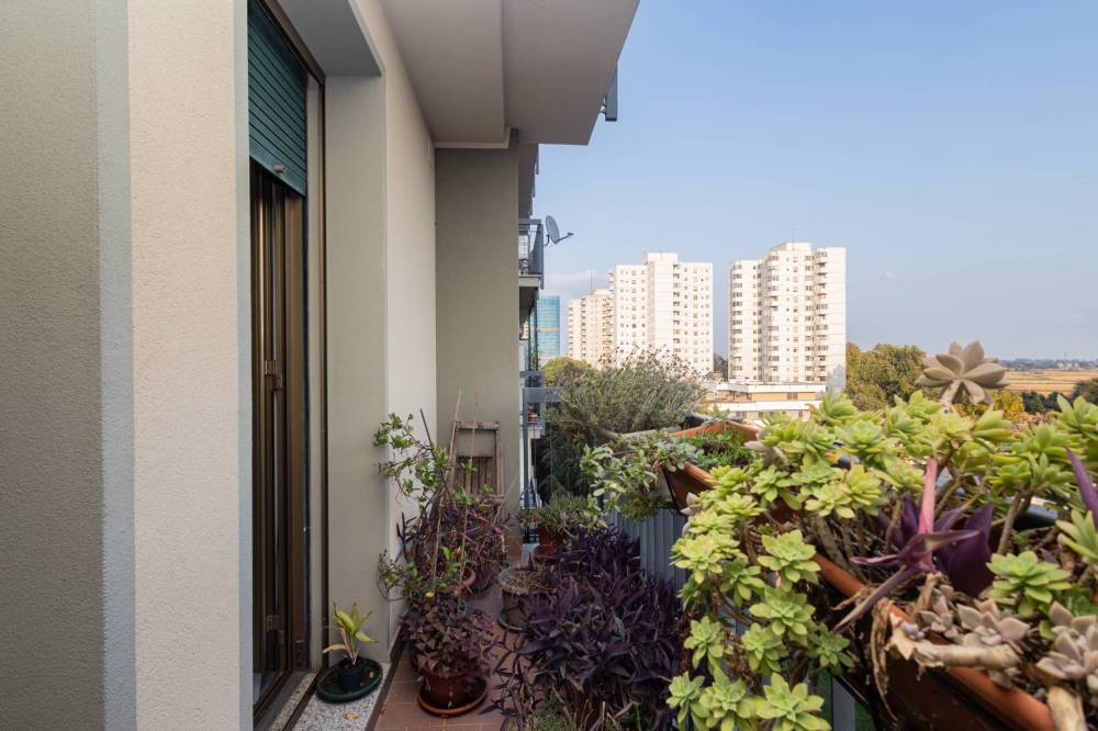 La soluzione sita ad un settimo piano con ascensore risulta così composta: ingresso, soggiorno con accesso al balcone, cucina abitabile con accesso al secondo balcone, disimpegno, 2 ampie camere da letto e bagno finestrato con box doccia.
