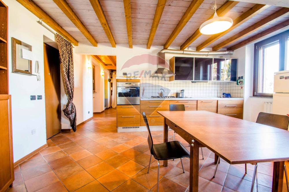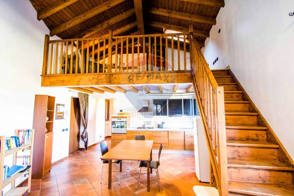 Al piano terra troviamo un grande box riscaldato con zona lavanderia, salendo al primo piano ci accoglie l'ampia zona living dagli alti soffitti con travi in legno e la cucina a vista, sempre al piano, due camere da letto il bagno finestrato con doccia ed un pratico ripostiglio.