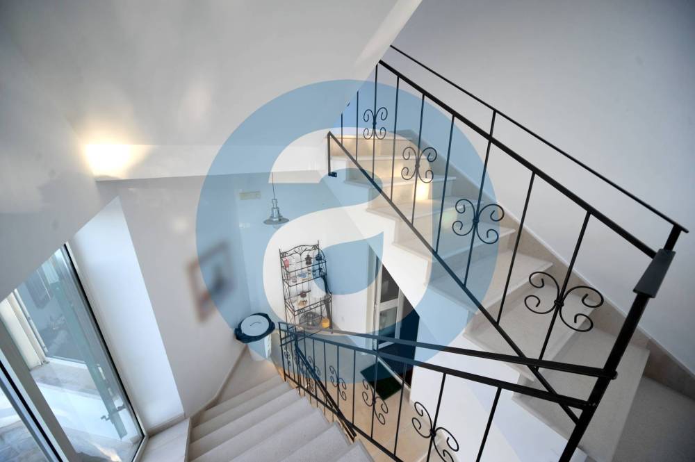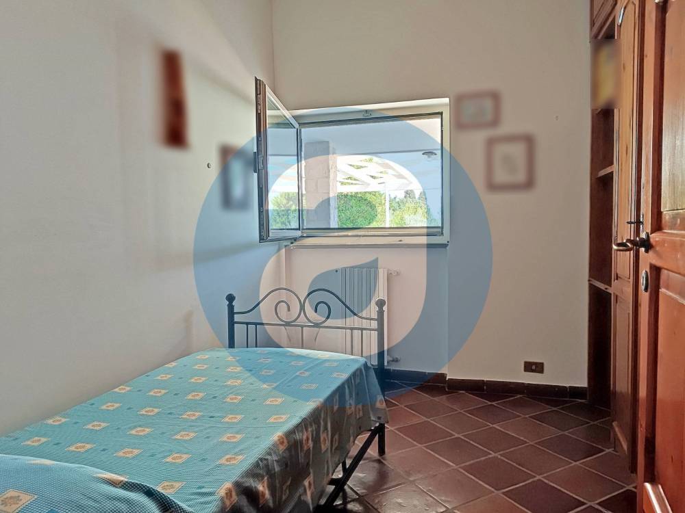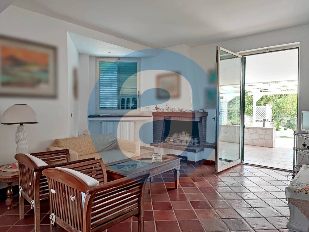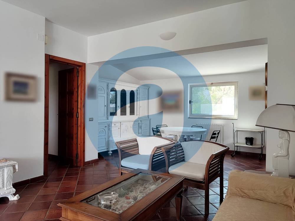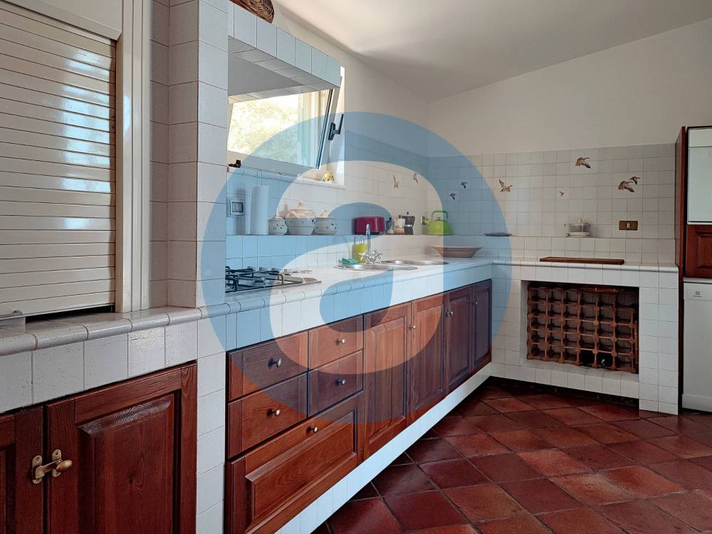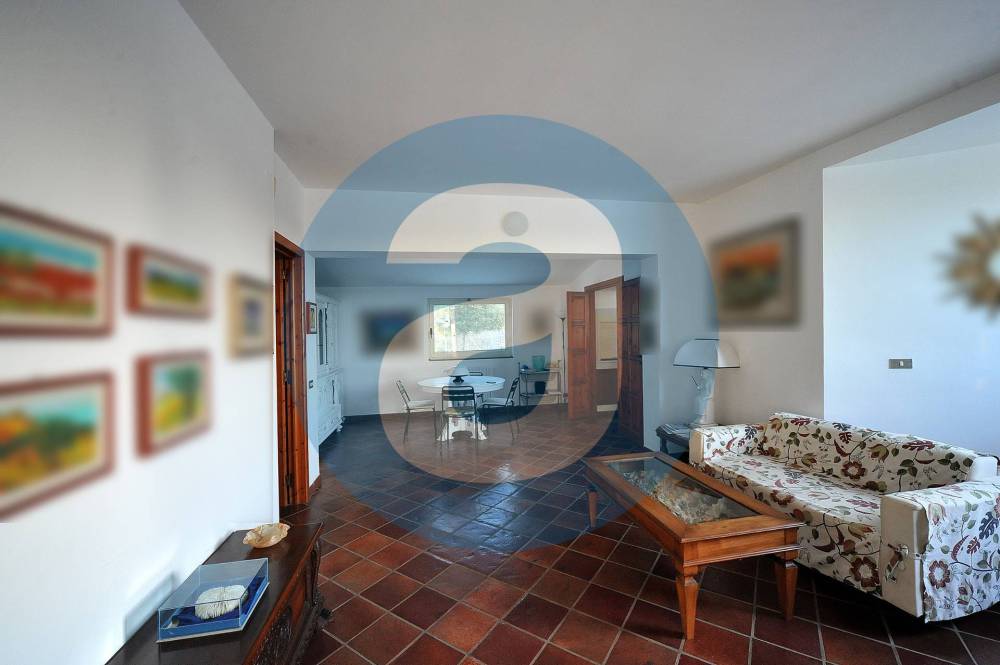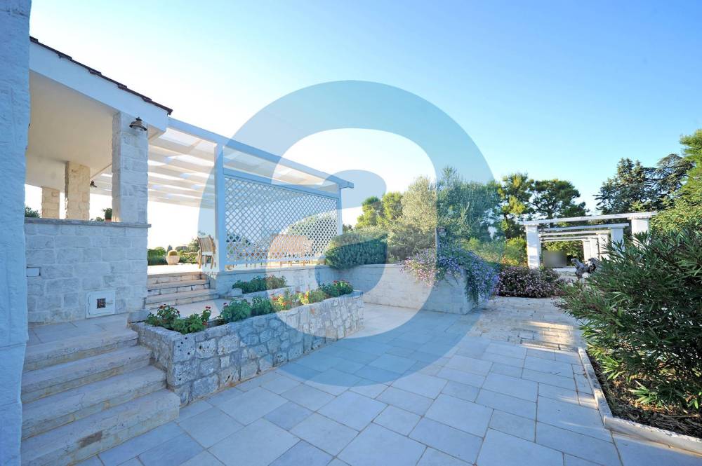 ESTERNO: Lo spazio antistante l'ingresso della villa è composto da un pergolato di 87 mq e un portico di 22 mq. Adiacente al pergolato c'è la zona con la piscina a sfioro di 130 mq, dotata di ampia pavimentazione perimetrale per lettini, sdraio e doccia a servizio. Nel giardino, di 1.900 mq, che circonda l'immobile sono presenti alberi di ulivo, querce, corbezzoli e altre piantumazioni a verde con impianto di irrigazione automatizzato e la possibilità, in quanto già urbanisticamente autorizzata, di creare una serra. Completano la superficie esterna il terrazzo di 57 mq, la corte di 465 mq e l'ampio parcheggio auto di 275 mq.