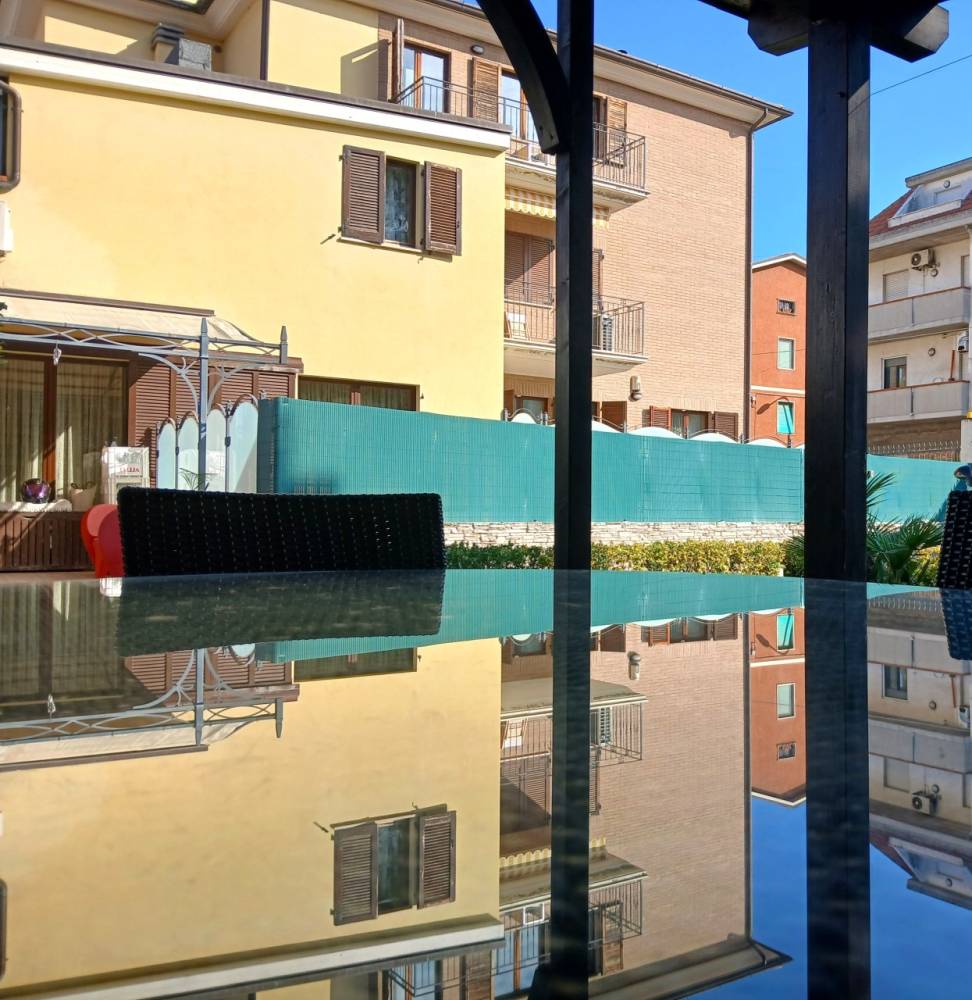 SAN BENEDETTO DEL TRONTO - Località Porto D'Ascoli centro - In un contesto residenziale tranquillo e riservato, prestigiosa Villetta affiancata su due lati, che offre la massima privacy grazie al suo ingresso principale completamente indipendente, oltre ad altro secondario e di servizio alle spalle. La proprietà si distingue per i suoi accessi tutti elettrificati, garantendo comodità e sicurezza: Cancelletto pedonale, Cancello che apre l'accesso carrabile allo splendido giardino privato e Cancello che porta ai due garage inclusi nella vendita. Un meraviglioso ed ampio giardino a prato, un'oasi di relax, è posto all'ingresso curato nei minimi dettagli e arricchito da elementi di charme: un gazebo in legno, perfetto per cene all'aperto o momenti conviviali con un set di tavolo e sedie, una suggestiva fontana ornamentale ed un pozzo per l'irrigazione temporizzata con timer. Vi è anche spazio dedicato per il parcheggio di due auto. Dal fondo del giardino, un piccolo e accogliente portico anticipa l'ingresso principale della dimora. Oltrepassata la soglia, si accede a un elegante disimpegno con guardaroba che conduce al cuore della casa: il grande salone. Questo ambiente, ideale per il ricevimento, è inondato di luce naturale grazie ad una finestra ed una porta-finestra che offrono una vista incantevole e un passaggio diretto al giardino. Attraversando la zona pranzo si va verso la cucina completamente attrezzata, un vero gioiello di design: realizzata su misura, offre ogni comfort ed è inclusa nel prezzo di vendita, rappresentando un notevole valore aggiunto. Un pratico disimpegno secondario serve la zona giorno ed ha il primo bagno di servizio/ospiti, finemente rifinito, oltre armadiature a muro sapientemente integrate che nascondono e organizzano sia gli impianti tecnici che comodi ripostigli . Da qui si va alla zona notte principale, che comprende tre accoglienti camere da letto, ulteriore comodo secondo bagno ed un grande terrazzo a livello con punto acqua esterno. Una scala di design, partendo dalla zona giorno, conduce al piano superiore interamente dedicato alla suite padronale. Questo spazio esclusivo include la camera da letto principale con un angolo studio riservato e zona armadio ed un lussuoso bagno privato completo di vasca. Dallo stesso piano si accede a un utile e spazioso terrazzo coperto, trasformato in una vera e propria zona relax e benessere privata. Quest'area eccezionale vanta una zona dedicata agli attrezzi della palestra, una doccia ed una sauna, offrendo un rifugio di lusso e rigenerazione direttamente in casa. L'immobile dispone di impianto di riscaldamento a pavimento e impianto di condizionamento d'aria fredda sezionati in 3 reparti, impianto di allarme e cassaforte integrata a muro. L'abitazione combina perfettamente la presenza importante di spazi esterni con una distribuzione interna estremamente funzionale e ricca di comfort esclusivi. Rif. 6909 DiLeoImmobiliare