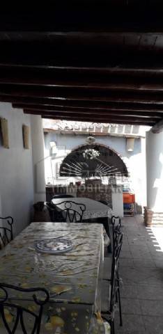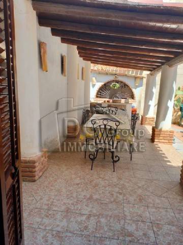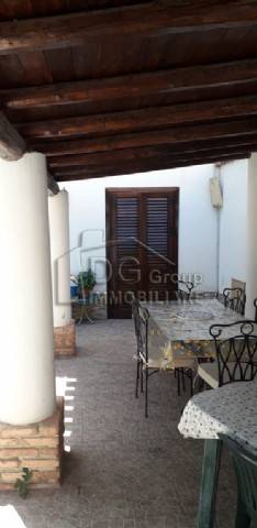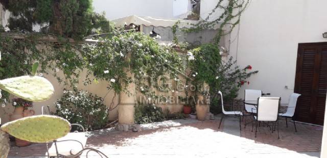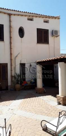 La casa è nel centro storico ed è di interesse storico per la presenza di un baglio interno in cui domina un pino secolare. Dista circa 200 mt dal mare. È distribuita su due livelli, più una mansarda. Si può dividere in due appartamenti ben distinti. Al piano terra vi sono tre camere più i servizi ( cucina e bagno) e un ampio cortile interno. Al primo piano vi sono tre camere da letto, due bagni e una veranda, da cui si accede alla veranda della mansarda. La casa occupa una superficie edificata di 90 mq sia a piano terra che al primo puano, più 100 mq di cortile, a cui si aggiungono la mansarda con veranda. Le rifiniture interne sono di pregio e data la disposizione delle camere e dei bagni potrebbe essere adibita a B and BnnLa superficie totale esclusa la mansarda con veranda, è di 280 mq