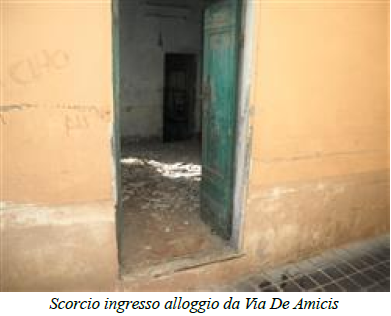 Alloggio da ristrutturare composto da: tre vani al piano primo del fabbricato (posto a livello strada) con accesso diretto dalla strada nonché - mediante scala esterna con smonto su ballatoio comunicante - da corte laterale sottostante da cui si accede a locale accessorio posto al piano terra.
