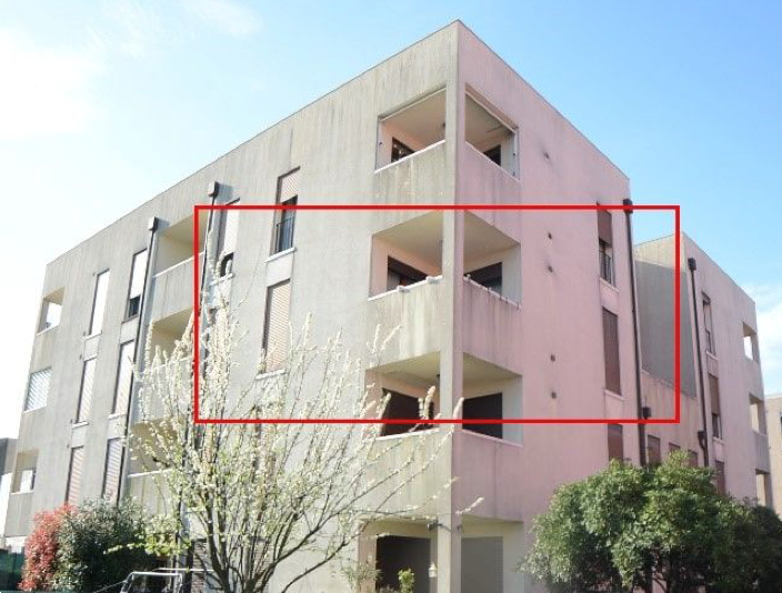 Appartamento al piano secondo con annesso garage al piano interrato facenti parte del condominio denominato "Dado" con ascensore situato a Paese (TV) in via Brondi, composto da un ingresso, un soggiorno-sala da pranzo, due camere da letto, due bagni, un terrazzo coperto ed uno scoperto.