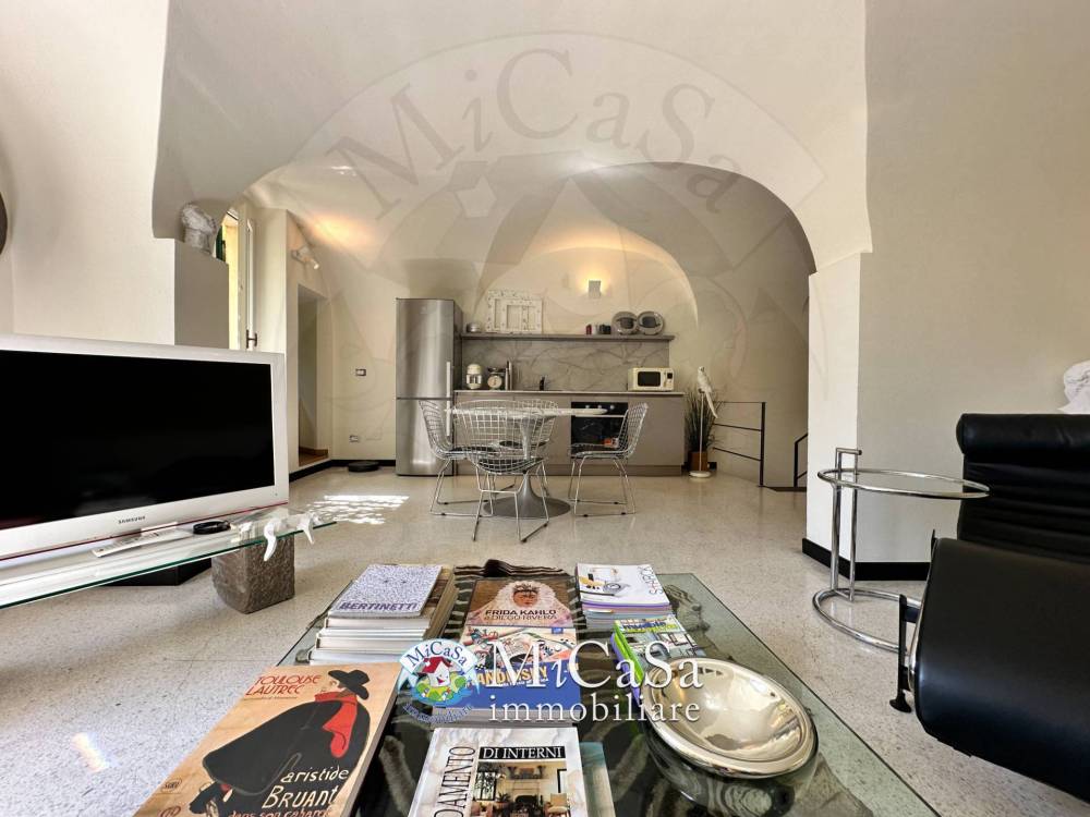 All'interno di un palazzo storico signorile con incantevole parco privato troviamo questo appartamento dal sapore deciso ed accogliente, dato dalla sapiente ristrutturazione con materiali di pregio e dall'affascinante scelta di arredi e complementi d'arredo. La casa caratterizzata da volte a crociera è composta internamente al primo piano da ampio soggiorno con cucina a vista, ripostiglio/lavanderia, camera matrimoniale, cabina armadi e bagno con doccia. Scendendo al piano terra troviamo una seconda zona living con divano letto e bagno privato completo di doccia, oltre all'accesso al delizioso giardino di proprietà, già recintato per un eventuale cagnolino. Questo ambiente, dotato anche di eventuale ingresso indipendente è perfetto sia come stanza ospiti che come ufficio/studio. L'immobile è subito disponibile e viene locato arredato come in foto, con arredi nuovi e di prestigio.