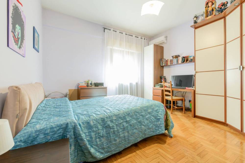 L'immobile internamente è composto da un comodo ingresso, un ampio salone di rappresentanza, una cucina abitabile di 30 mq con camino, un corridoio con armadio a muro, tre camere da letto matrimoniali, due bagni entrambi con finestra, un ripostiglio, due balconi, e una corte esterna pavimentata. L'ingresso principale è da via Nomentana e un secondo ingresso indipendente da via Monte San Salvatore. La residenza è stata completamente ristrutturata, dispone di impianto di climatizzazione e allarme, di grate e zanzariere su tutte le finestre. Lo stabile si trova all'interno di un comprensorio con parco privato in contesto signorile, con la possibilità di parcheggiare più di un auto nell'area condominiale chiusa da cancello. La casa è ideale per uno o più nuclei familiari in quanto si presta anche ad una divisione interna in due unità, ognuna con entrata indipendente. APE "F".