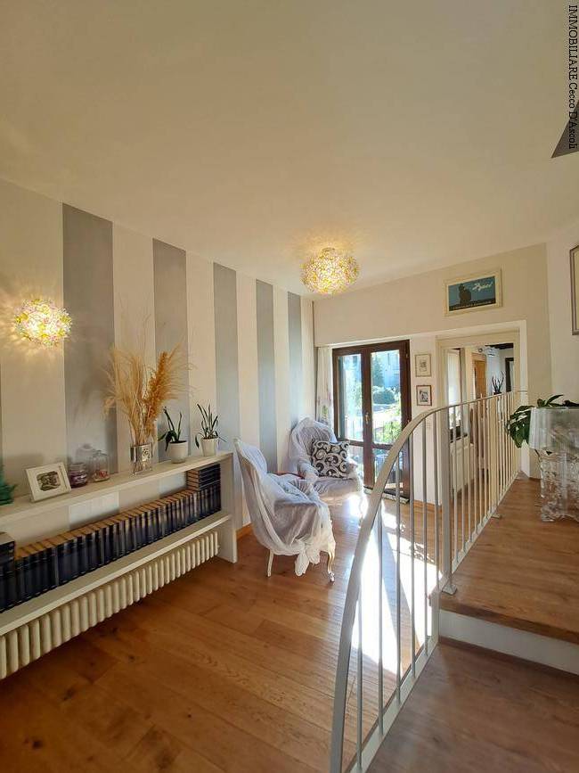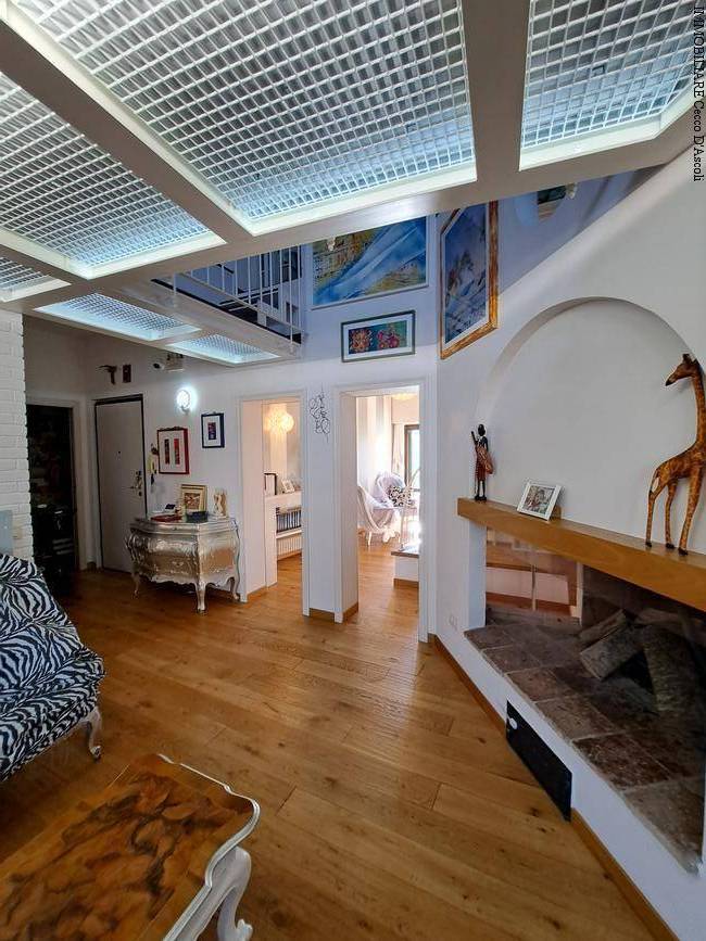 L'appartamento è suddiviso in 8 locali, tra cui ampi e luminosi soggiorni, camere da letto e bagni. La zona giorno è composta da un accogliente salotto con camino, una cucina abitabile, un salottino relax con vista sui tetti della città, comodo locale lavanderia e bagno.