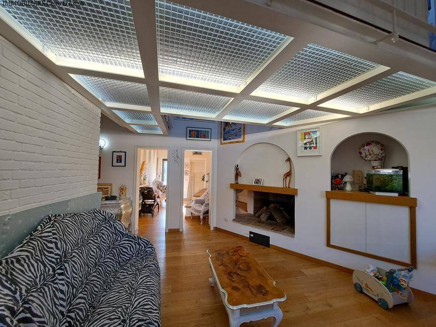 La zona notte, disposta al piano soppalco invece, è composta da due camere da letto, studio, sala TV, bagno moderno e funzionale. L'appartamento è dotato di un efficace sistema di riscaldamento autonomo a metano, con impianto a radiatori o pannelli radianti, per garantire il massimo comfort in ogni stagione dell'anno oltre a n. 3 condizionatori inverter.